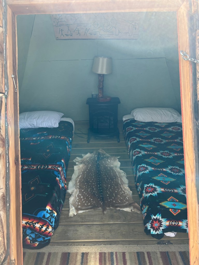 For my BFF’s birthday, a group of us decided to get away to Ruidoso, NM. To keep it economical, we decided to camp! Mother Nature had other plans as it turned out to be incredibly windy with chances of snow and low temperatures. Rather than renting a potentially pricey hotel room nearby, we opted to stay at the campsite BUT in a cute teepee!